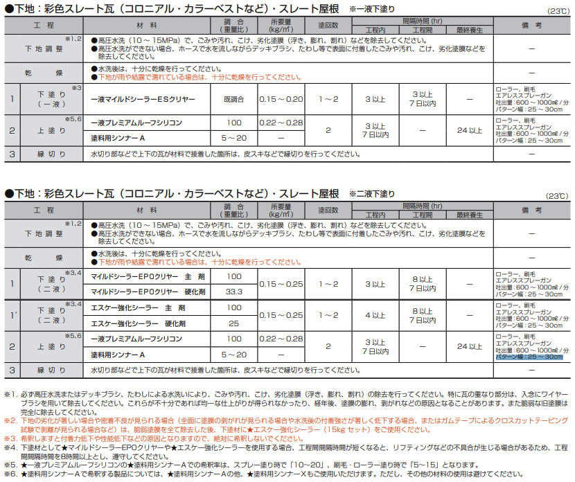 - 薄型塗装瓦・スレート屋根の場合、基材自体の強度低下が著しく、塗装できない場合もありますのでご注意ください。
