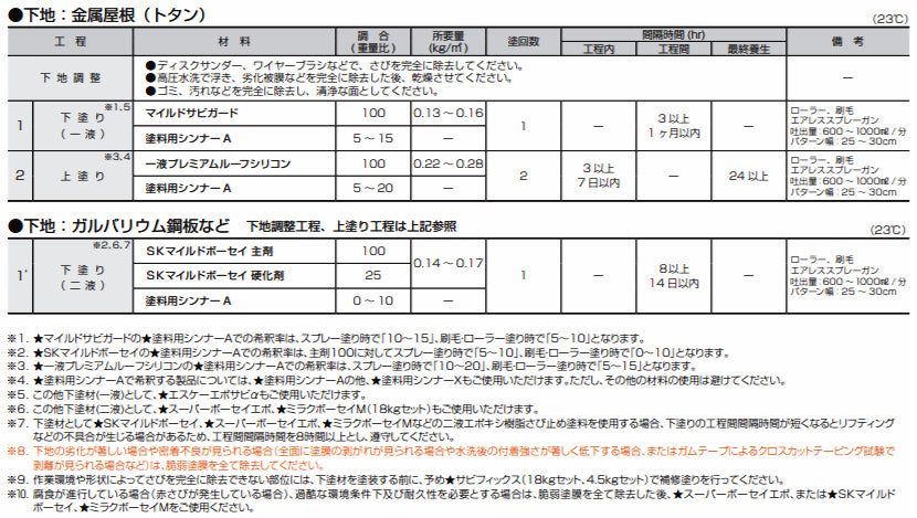 - :5~20(一液プレミアムルーフシリコンを100とする)